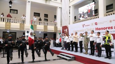 Tras la proyección de un video donde la directora de Protección Civil de Veracruz, Guadalupe Osorno, a nombre de la gobernadora Rocío Nahle da un reconocimiento al pueblo de Tamaulipas, por las labores de auxilio prestadas, el mandatario entregó litografías enviadas por la gobernadora al capitán Marcelo Israel Peña y al técnico auxiliar Fidel Eduardo Castro.