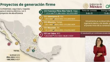 Por su parte, la secretaria de Energía, Luz Elena González Escobar, agregó que el pasado 17 de octubre se emitió una convocatoria para los proyectos privados de generación eléctrica para ordenar, priorizar y agilizar las solicitudes de inversión privada para el desarrollo de 20 nuevos proyectos: 15 fotovoltaicos con una capacidad de 2 mil 471 MW y cinco de energía eólica, que aportarán 849 MW, dando un total de 3 mil 320 MW de generación y mil 488 MW de almacenamiento.