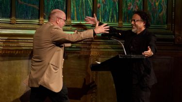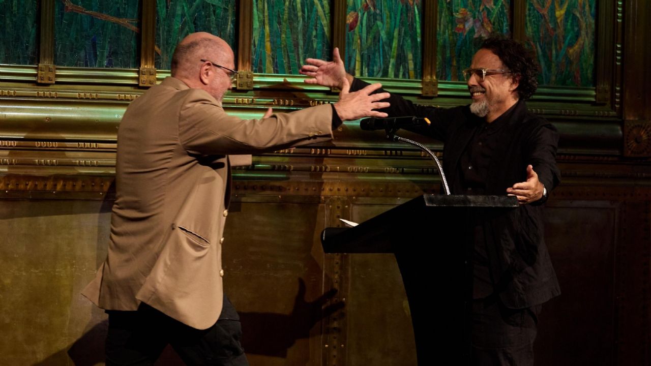 González Iñárritu, ganador de cuatro premios Oscar, subió al escenario entre aplausos y, con emoción, invitó a Guillermo Arriaga, quien escribió el guión de la cinta, a unirse a él.