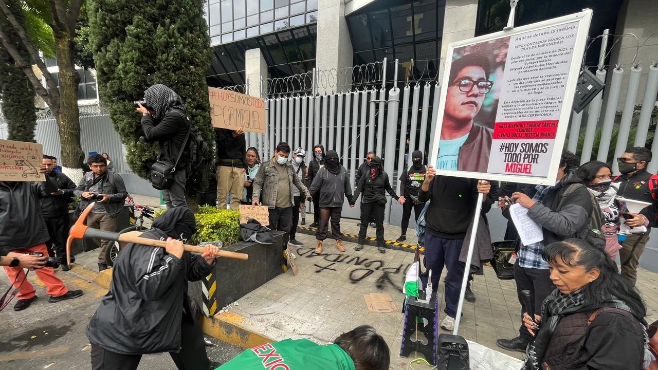 Con pancartas y gritos en referencia a una pronta resolución para los padres y hermana del fotoperiodista acaecido, acompañados por miembros de su equipo legal, la colectiva "Justicia para Miguel", dos representantes de asociaciones civiles de derechos humanos, sumaron unas 50 personas al pie del edificio del PJF, al sur de esta ciudad.
