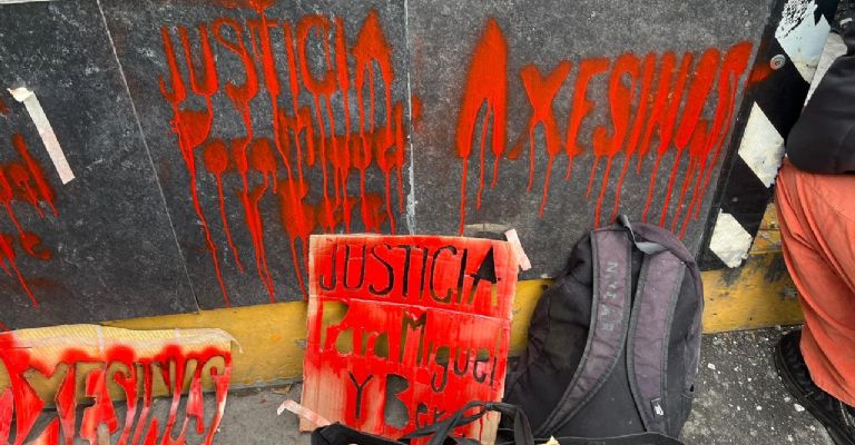 Tras las consignas, con un pico y otras herramientas para perforar cemento, se abrió una parte de la banqueta en donde se colocó un “contador”, un cartel en donde se leen los “días de impunidad del caso”, señalando a Sánchez Cisneros como principal figura del retraso de la audiencia inicial.