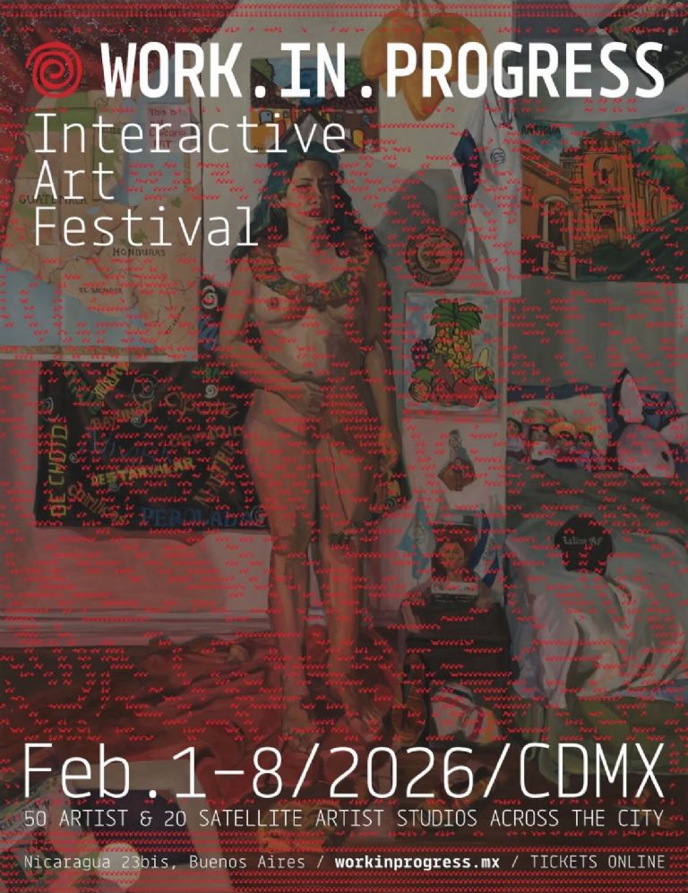 WIP se realizará del 1 al 8 de febrero -en el contexto de la Semana del Arte en Ciudad de México-, con apoyo de la plataforma curatorial Novo Collective, enfocada en repensar el arte en el espacio público. La exhibición se realizará en una galera situada en la colonia Buenos Aires de esta ciudad, con extensión a algunos talleres de los 59 artistas invitados.