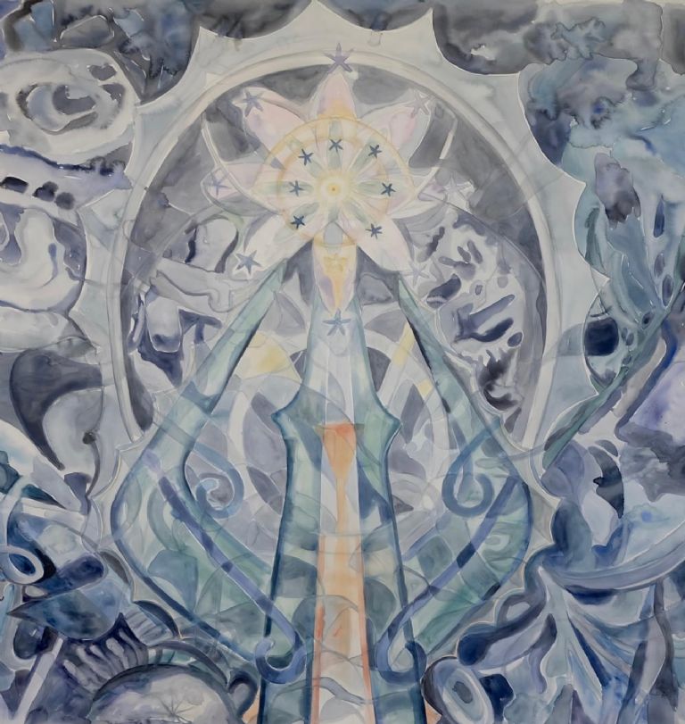Loss ha desarrollado un lenguaje pictórico propio a partir de la reinterpretación simbólica de formas orgánicas, concebidas no como simples representaciones botánicas, sino como entidades vivas, cargadas de significado espiritual. La acuarela —una técnica asociada históricamente a la fragilidad— se convierte en sus manos en un campo de exploración profunda, capaz de sostener piezas de gran formato sobre tela y papel, donde lo humano, lo sagrado y lo natural se entrelazan