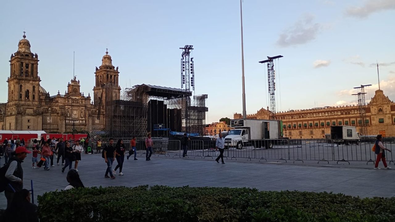 En la toma del fanático se alcanzan a ver los trabajos en el Zócalo como parte del armado del escenario para el show de este 1 de marzo.