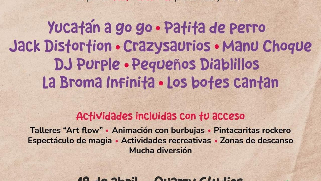 El evento será en Quarry Studios a partir de las 13:30 horas y tendrá a bandas como Yucatán a Go Go, Patita de Perro, Crazysaurios, DJ Purple, Pequeños Diabillos, la Broma Infinita, Los Botes Cantan, y los internacionales Manu Choque (Argentina) y Jack Distortion (Chile), este último en medio de una creciente fama.