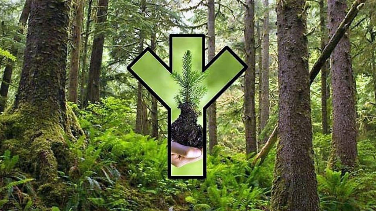 Por eso uno de los símbolos de identidad de los ecofascistas es el Algiz (o ), un antiguo caracter del alfabeto rúnico (germano-escandinavo), conocido como el rune o ideograma vikingo de "la vida", usado por el movimiento neonazi en lugar de los símbolos del Tercer Reich que quedaron prohibidos tras la guerra.