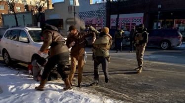 Segundos después, al menos media docena de agentes federales rodean a Pretti, quien es derribado al suelo y golpeado varias veces. Varios agentes intentan ponerle los brazos a la espalda, pero Pretti forcejea.