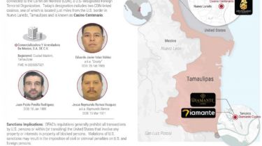 Por medio del vocero de la dependencia, Thomas Pigott, el gobierno de Donald Trump indicó que los casinos y facilitadores de narcotráfico y tráfico de personas, operan a lo largo de corredores fronterizos clave, entre los cuales se cuenta al de Nuevo Laredo, Tamaulipas.WASHINGTON (apro). – El gobierno de Estados Unidos anunció la aplicación de sanciones en contra de casinos y personas facilitadoras de lavado de dinero, narcotráfico y tráfico de personas en corredores de la frontera de Tamaulipas para del Cártel del Noreste.