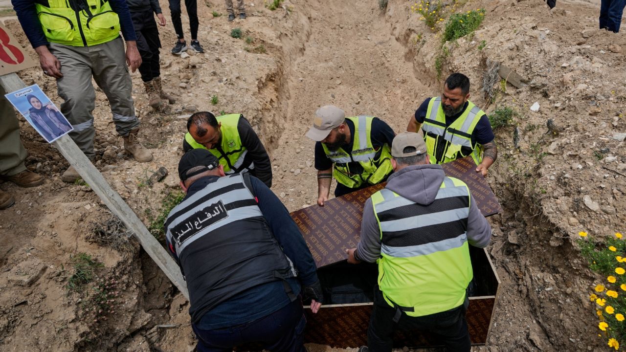 Dolientes se reunieron el miércoles para enterrar a la mujer, Ghadir Baalbaki, de 19 años, en un cementerio temporal para quienes han muerto durante la guerra. Muchas familias no pueden sepultar a sus familiares en sus localidades de origen, más cerca de las líneas del frente.