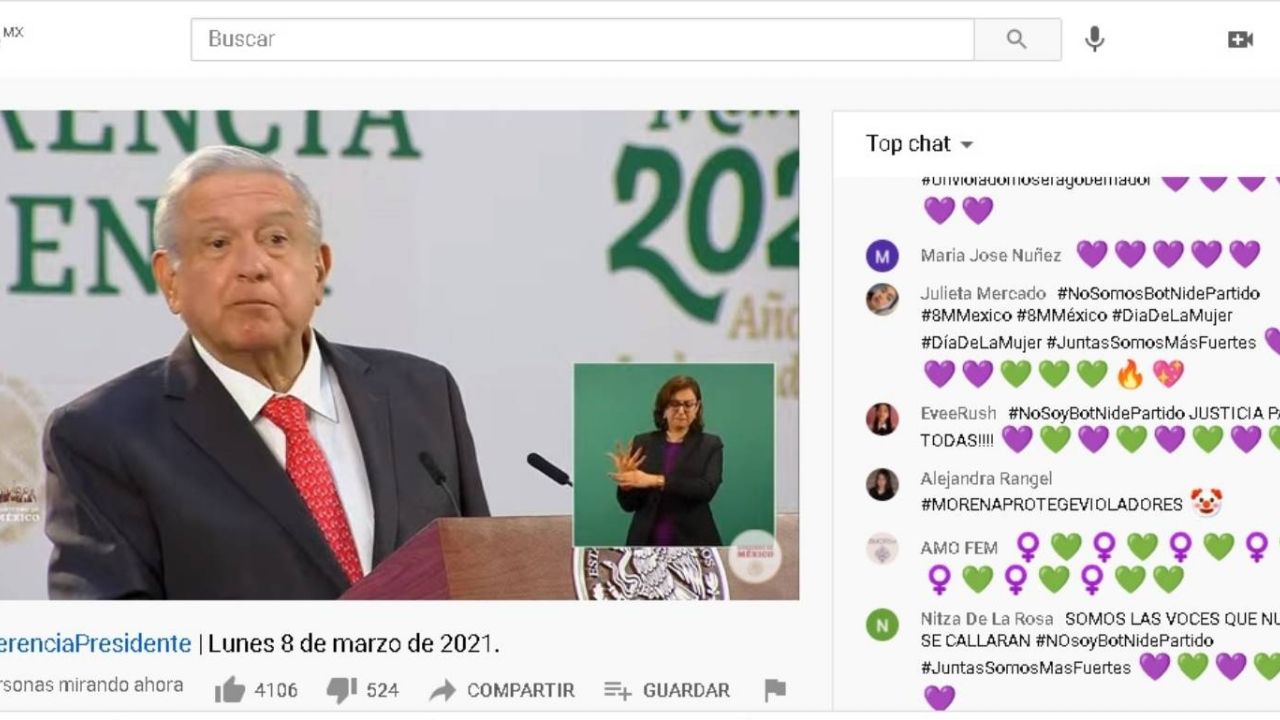 Protesta feminista y de apoyo a AMLO inunda transmisión virtual de la mañanera