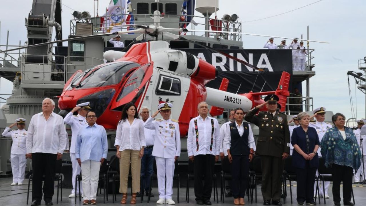 AMLO rinde homenaje a víctimas de “Otis” desde un barco de la Marina