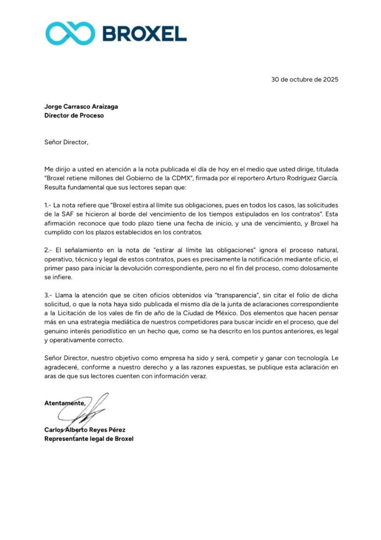 La continuidad en las asignaciones, incluso tras múltiples retrasos en la devolución de recursos públicos y solicitudes formales de reembolso, demuestra el nivel de preferencia institucional hacia la firma de Gustavo Gutiérrez Galindo. Como muestra, en noviembre de 2024, Broxel ganó la licitación SAF-DGRMSG-LP-05-24 para la adquisición de vales de despensa de fin de año, por un monto de 3 mil 700 millones de pesos, en un proceso señalado por posibles conflictos de interés.
