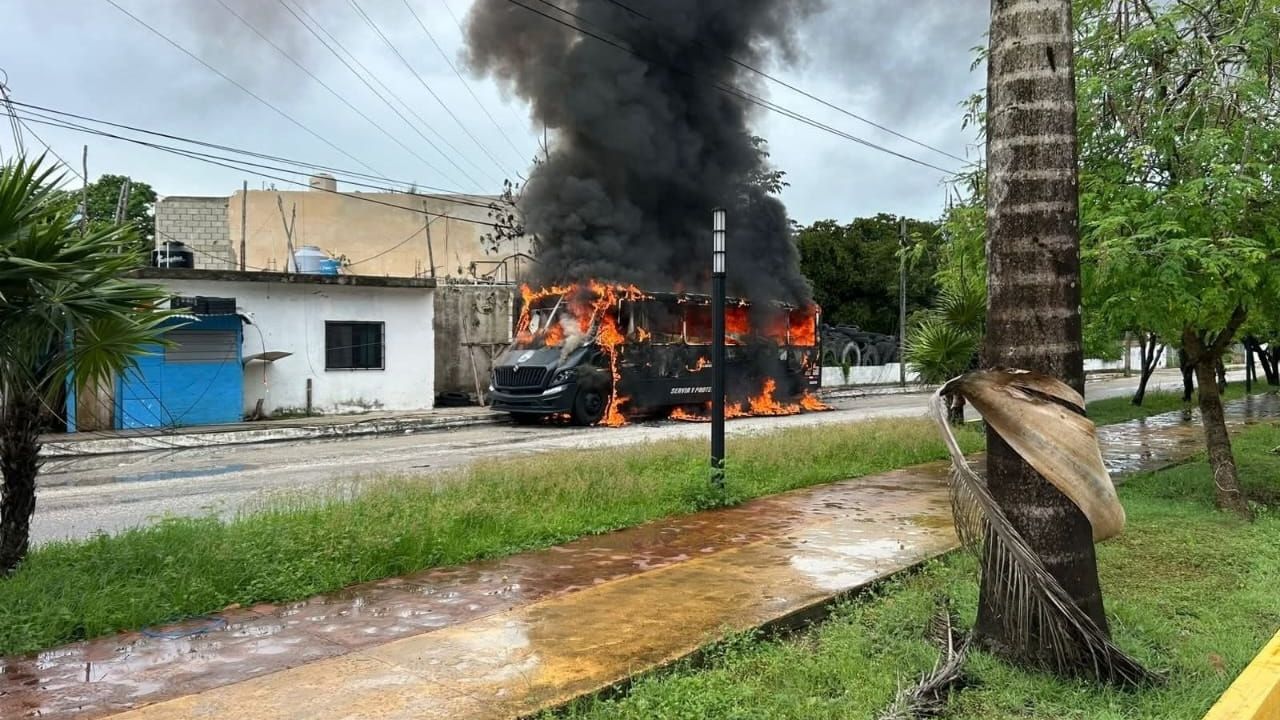 En un hecho inédito en la localidad turÃstica, la unidad policiaca, que sirvió para trasladar a elementos de la SecretarÃa de Seguridad Ciudadana para atender una denuncia por despojo del Ejido Playa del Carmen, fue reducida a cenizas, tras generar una gran columna de humo negro que pudo verse desde la isla de Cozumel, de acuerdo con reportes.