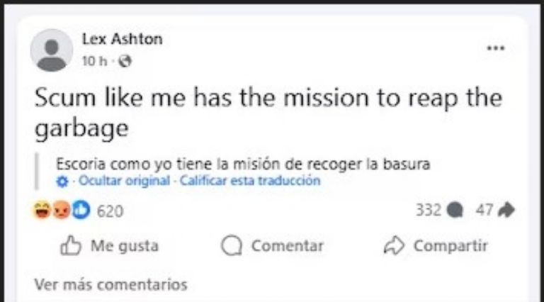 Eso explicaría por qué Lex Ashton, antes de asesinar a su compañero en el CCH, escribió en su perfil de Facebook: “Scum like me has the mission to reap the garbage (Escoria como yo tiene la misión de cosechar basura)”.