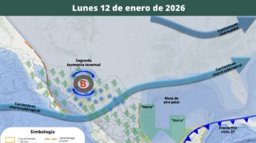 Por otra parte, se ha formado la segunda tormenta invernal de la temporada sobre el noroeste mexicano y propiciará ambiente muy frío a gélido y vientos fuertes a muy fuertes en el norte del territorio nacional; lluvias fuertes en Chihuahua, Durango y Sinaloa; chubascos en Coahuila, Nuevo León, Tamaulipas, San Luis Potosí y Zacatecas; y condiciones para la caída de nieve y/o aguanieve en zonas de Sinaloa, Durango, Chihuahua, Coahuila, Nuevo León, San Luis Potosí y Zacatecas, y posible caída de lluvia engelante en zonas de Chihuahua, Coahuila y Nuevo León.