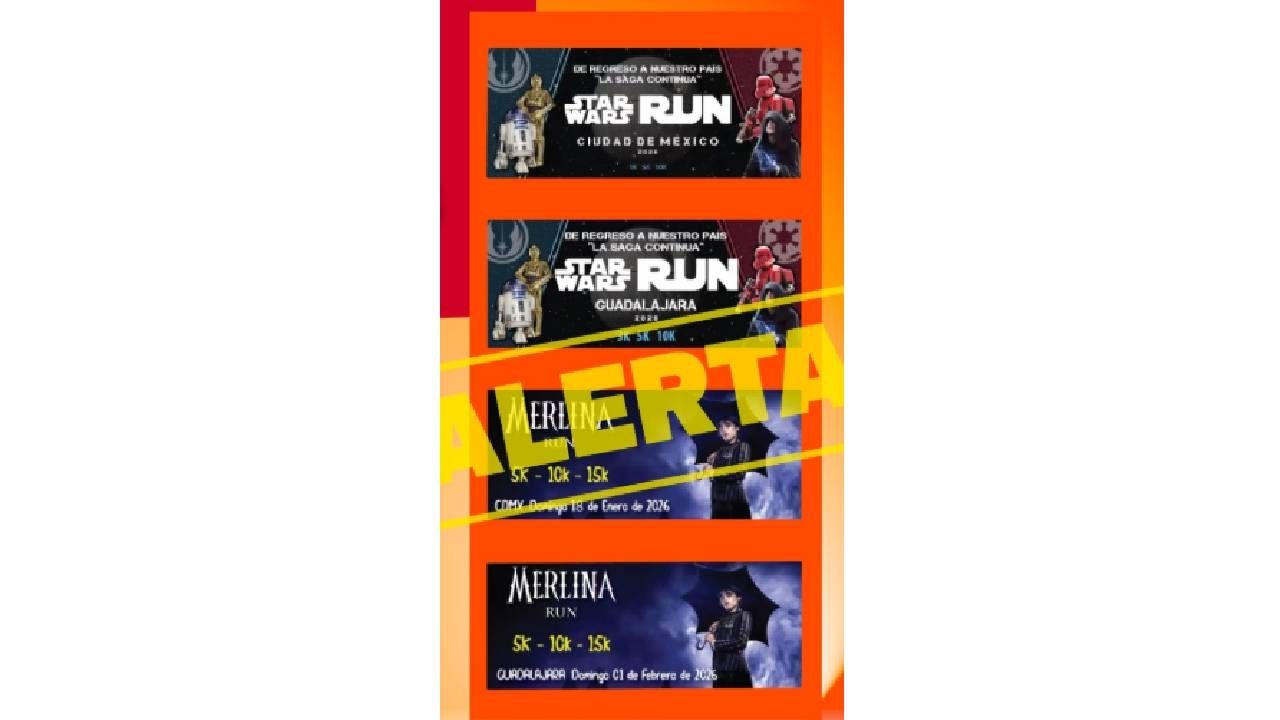 “Alertamos sobre un fraude en supuestas carreras organizadas por Mundo Runner, con temáticas de Starwars (sic) y Merlina, a realizarse en distintas ciudades del país en fechas próximas. Se han detectado cobros de inscripciones a carreras inexistentes, recomendamos no confiar en este proveedor y no realizar pagos por transferencia”, advirtió la Procuraduría.