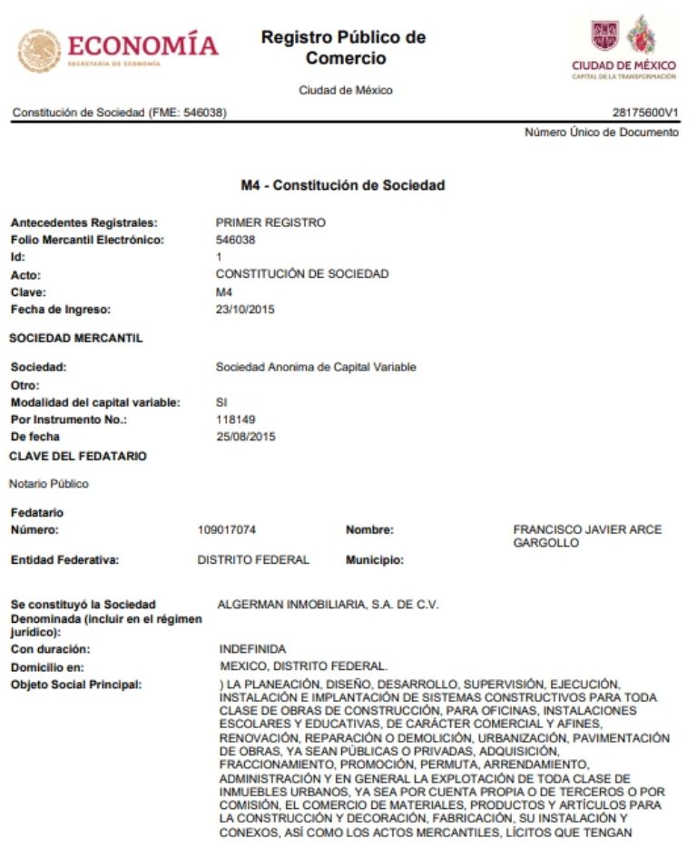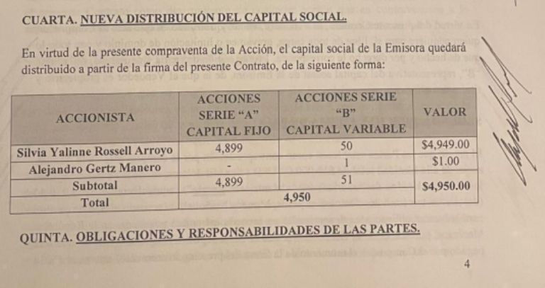 La accionista que le vendió a dicha empresa fue Silvia Yalinne Rossel Arroyo, sin embargo, hasta el momento se desconoce cuánto pagó ALGERMAN Inmobiliaria por esas acciones pues, conforme al registro realizado en el SIGER, el valor de las mismas es de 4 mil 949 pesos.