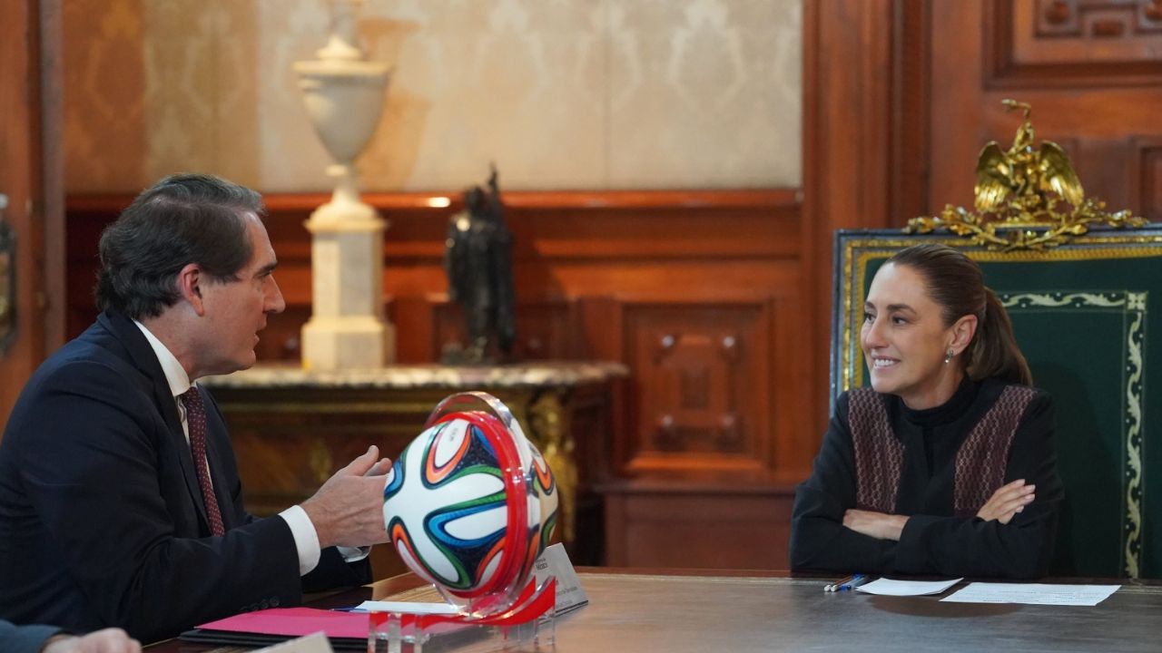 “Me informó la inversión de 6 mil millones de dólares en nuestro país. El trofeo de la Copa Mundial de Futbol 2026 llega mañana al AIFA”, publicó la mandataria federal.