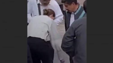 En las imágenes también se ve a otro colaborador de Aguilar Ortiz agachándose para ayudar a la directora de comunicación social a limpiar los zapatos de su superior jerárquico.