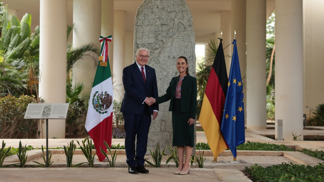 El encuentro tiene como objetivo estrechar lazos entre ambas naciones, así como abordar temas culturales, educativos y, al mismo tiempo, de comercio y de inversión, informó el gobierno mexicano en una tarjeta informativa.CIUDAD DE MÉXICO (apro).- La presidenta Claudia Sheinbaum recibió a su homólogo de Alemania, Frank-Walter Steinmeier, en Cancún, Quintana Roo.