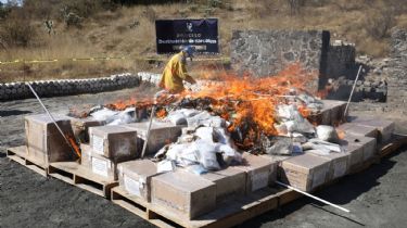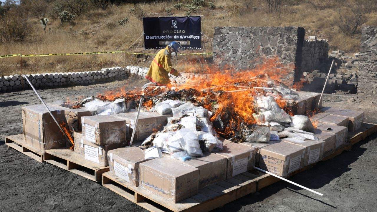 Posteriormente, el material fue trasladado en convoy a instalaciones de la Defensa en Teotihuacán, Estado de México, donde se realizó la incineración.
