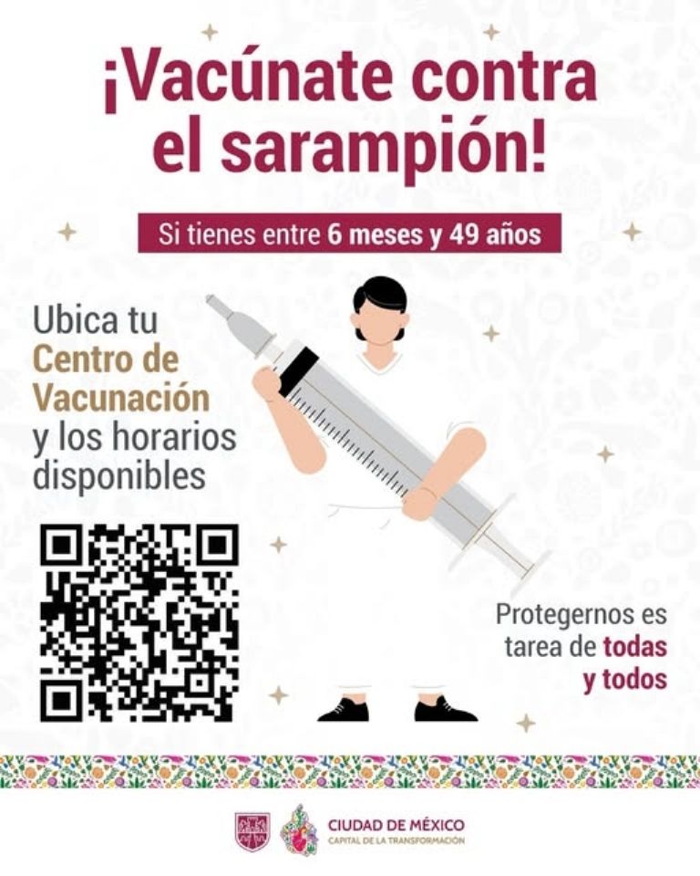 Además de los puntos de vacunación en centros de salud de las alcaldías, la estrategia contra el sarampión incluye más de 60 módulos en sistemas de transporte público (Metro, Metrobús, Cablebús, RTP, Tren Ligero) y sedes adicionales en espacios de alta afluencia (parques, mercados, etc.), con distintos horarios, a fin de que todos los ciudadanos que lo requieran puedan aplicarse la dosis.