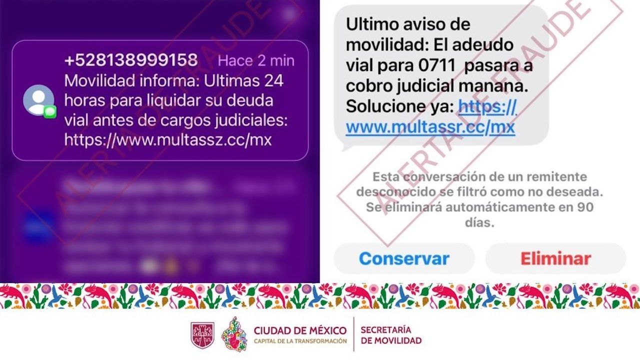 La Secretaría de Movilidad informa a la ciudadanía sobre la detección de mensajes de texto (SMS) fraudulentos en los que se notifican supuestos adeudos de movilidad, multas pendientes o sanciones, solicitando ingresar a enlaces externos… pic.twitter.com/DELvNgIiSZ