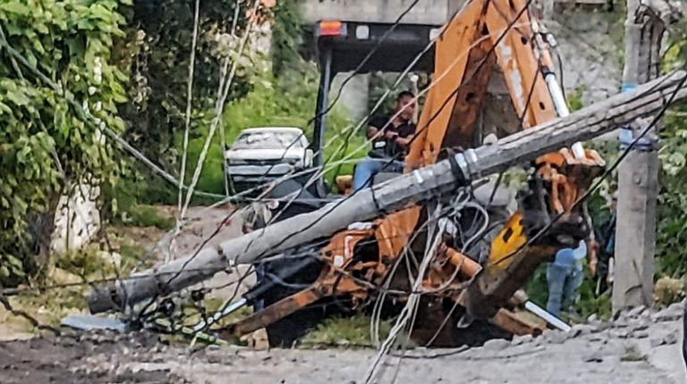 Alcalde de Emiliano Zapata se sube a excavadora para “trabajar” y derriba un poste frente a vecinos