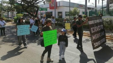 Los militares en situación de retiro acompañados de sus familias se movilizaron desde las instalaciones de la 7ª Región Militar, al oriente de Tuxtla Gutiérrez, hasta las inmediaciones del Palacio de Gobierno estatal, donde realizaron un breve mitin.