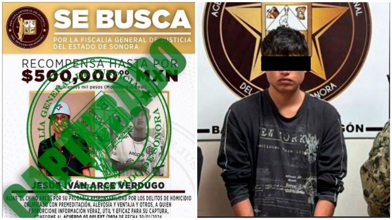 “El detenido fue identificado como Jesús Iván ‘N’, alias ‘El Chino Arce’, señalado como jefe de célula criminal generadora de violencia en la región y quien era buscado mediante ficha activa con recompensa vigente por la Fiscalía General de Justicia del Estado de Sonora (FGJES)”, señaló la dependencia a través de un comunicado.