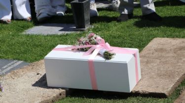 Después, bajo el sol del mediodía, los féretros fueron llevados hasta las fosas abiertas en el césped del cementerio. Alrededor, los asistentes permanecieron de pie, algunos con globos rosas en las manos, mientras se pronunciaban las oraciones finales. Las pequeñas cajas fueron colocadas junto a la tierra removida antes de ser descendidas a las sepulturas.
