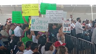 Cuando el director del IMSS, Zoé Robledo daba su explicación del proyecto que estará a cargo de la Secretaría de la Defensa Nacional, las porras eran ensordecedoras y entre los gritos se alcanzaba a escuchar la consigna de “¿Dónde están, dónde están, nuestros hijos dónde están?”, a la vez que alzaban pancartas con diversas leyendas, por lo que la presidenta bajó del estrado y se dirigió hacia las personas que se manifestaban para escucharlas