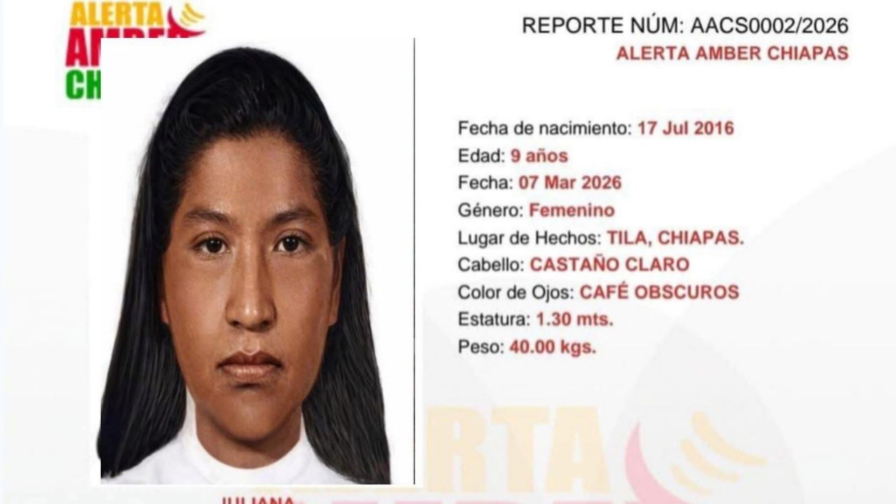 Debido a la extrema pobreza de la zona, la familia de Juliana no cuenta con una fotografía de ella; sin embargo, informaron que el día de su desaparición vestía un pantalón rojo y una blusa verde. Las autoridades elaboraron un retrato hablado y emitieron la Alerta AmberTUXTLA GUTIÉRREZ, Chis. (apro).- La desaparición de Juliana López Ruiz, una niña de nueve años de la etnia chol, ha encendido las alarmas en Chiapas. La menor cumplió cinco días desaparecida en las montañas del municipio de Tila, en los límites con Tabasco. Pero no solo son las desapariciones, Chiapas también vive una crisis de feminicidios en niñas.