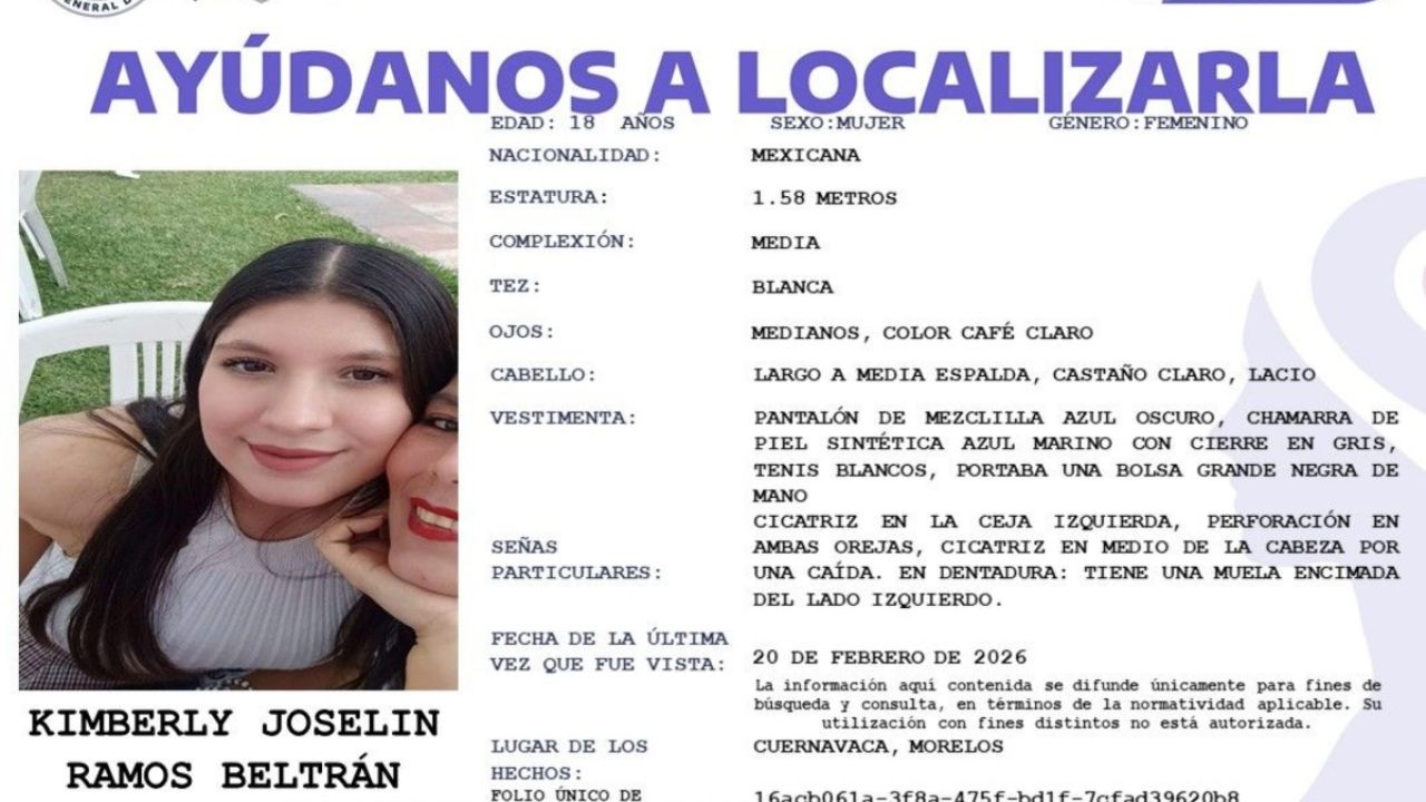 De acuerdo con información oficial, el hallazgo se realizó en un predio del poblado de Chamilpa, al sur de Cuernavaca, en una zona boscosa que colinda con instalaciones de la Universidad Autónoma del Estado de Morelos, donde desde el viernes trabajaba una comisión interinstitucional de búsqueda.CUERNAVACA, Mor. (apro).— El cuerpo de Kimberly Joselin Ramos Beltrán, estudiante de la Universidad Autónoma del Estado de Morelos (UAEM), fue localizado esta tarde en una zona boscosa ubicada en las inmediaciones del campus Chamilpa de la máxima casa de estudios, 11 días después de que se reportó su desaparición y tras tres jornadas de protesta en exigencia de que las autoridades activaran la búsqueda, confirmaron autoridades judiciales.