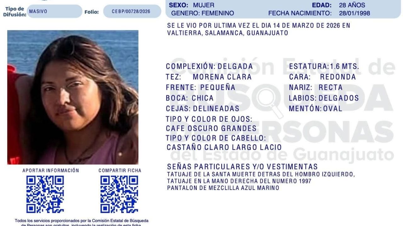 Aunque Ceci, como la llamaban sus compañeras del colectivo, encontró sin vida a su hermano en 2025, la joven se mantenía activa y participaba en marchas, pega de fichas de búsqueda y otras actividades que organizaba el colectivo Unidos Buscando Desaparecidos.SALAMANCA, Gto., (apro) .- Cecilia García Ramblas, integrante del colectivo Salamanca Unidos Buscando Desaparecidos, fue localizada sin vida, a dos semanas de que fue llevada por la fuerza cuando se encontraba en su domicilio en la comunidad Valtierrilla de este municipio.