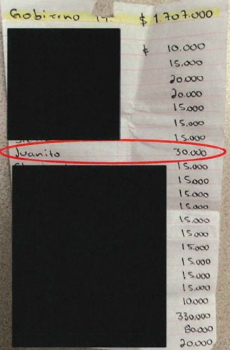 El documento, de 34 cuartillas, incluye fotografías con la supuesta relación de pagos escrita a mano y en hojas de cuaderno escolar. La mayoría de los nombres o apodos están testados y únicamente se dejaron visibles las claves con las que identifican a los funcionarios acusados.