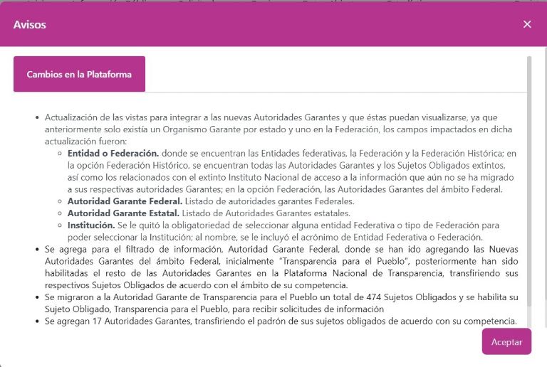 La Plataforma Nacional de Transparencia ya no conserva su eficiencia original debido a cambios realizados después de su entrega.La Plataforma Nacional de Transparencia (PNT) ha sido una herramienta funcional, segura y eficiente que permitió ejercer los derechos de acceso a la información pública y de protección de datos personales en México. Durante su operación, representó el principal vínculo entre la ciudadanía y las instituciones públicas, consolidándose como un referente tecnológico en materia de transparencia gubernamental.