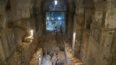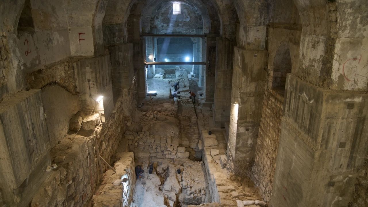 Durante los últimos dos años, los arqueólogos retiraron manualmente de la sala el equivalente a dos piscinas olímpicas de tierra y escombros. Las excavaciones revelaron lo que creen que son fosas de tinte de la Edad Media, probablemente para teñir telas, y la sección larga de los cimientos del muro asmoneo.