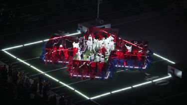 El rapero ganador del Grammy —frente a más de 133 millones de personas— decidió actuar sobre una enorme cuadrícula industrializada de luces parpadeantes que se asemejaba a un gigantesco controlador de PlayStation.