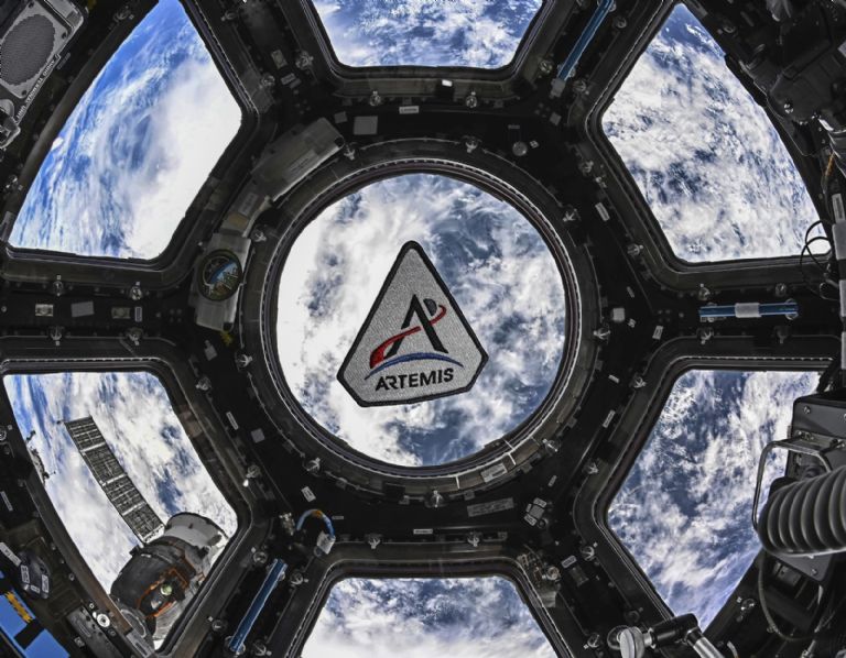 desde una de las ventanas de la cabina principal de la nave espacial Orion, mientras la