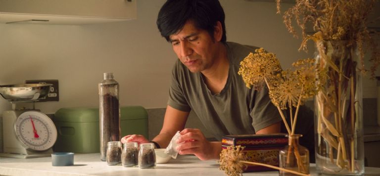 “Originalmente iba a tratar de un solo personaje migrante que cultiva semillas. Ángel, como un migrante encerrado en un espacio distópico y el cambio climático, no iba a poder salir de la casa, pero poco a poco mientras pasó la pandemia y hubo oportunidad de trabajar con más personas, me acordé de Alejandra Herrera, con quien trabajé en mi película Tiempo de lluvia y tuvimos una colaboración muy linda. Entonces le pregunté si quería participar y se convirtió en una historia de conexión y de amor entre estos dos personajes”.