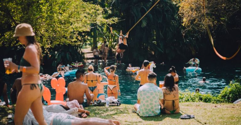 Cinco escenarios marcaron el ritmo del recorrido. Entre conciertos, las personas se repartieron por el parque: entraban y salían del río, se desplazaban hacia las albercas, buscaban sombra en las áreas arboladas, regresaban a los foros para un set específico y volvían a caminar cuando el siguiente cambio de horario los empujaba hacia otra zona.