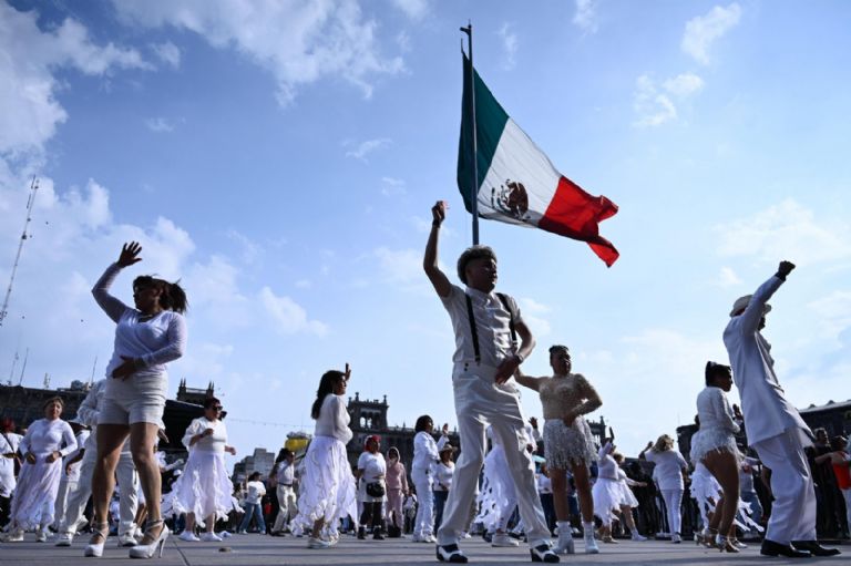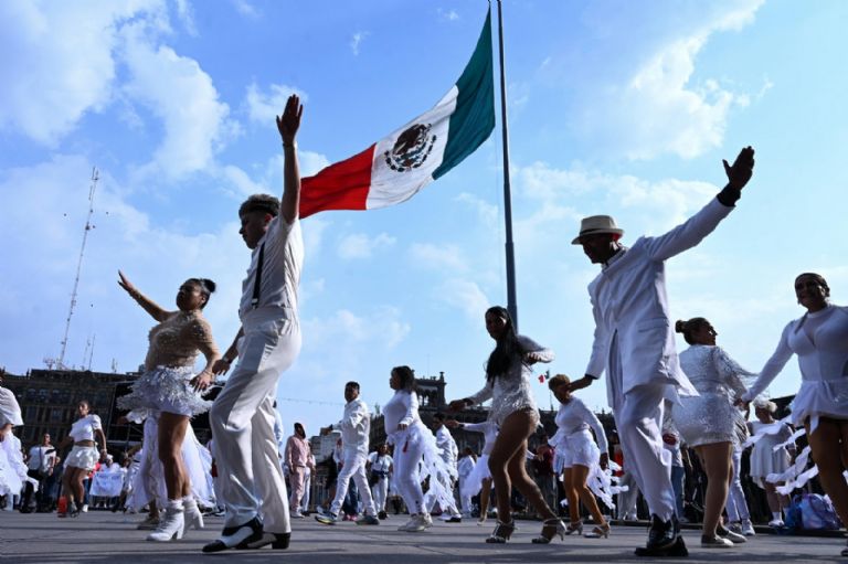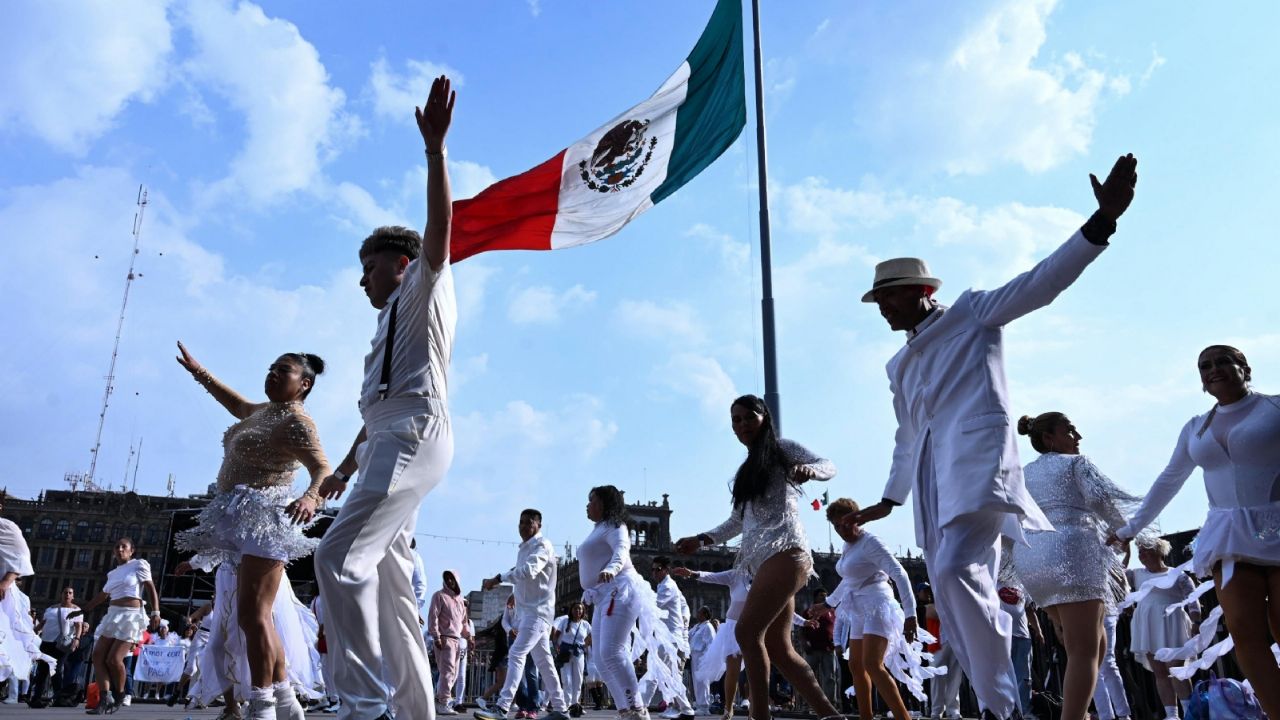 La coreografía masiva reunió a comunidades que participan en los programas Pilares, Faros y Utopías del gobierno capitalino, así como a decenas de clubes de baile provenientes de distintas alcaldías de la Ciudad de México y de ciudades de Estados Unidos.
