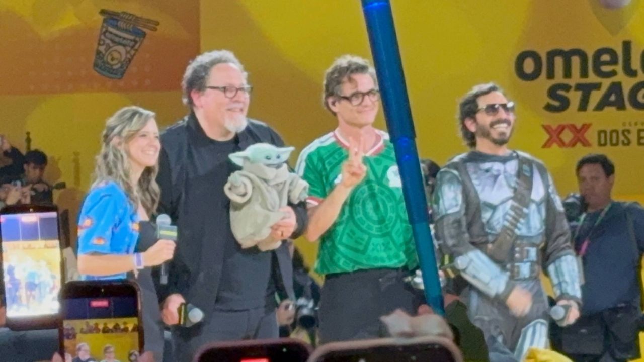 Favreau también compartió su propia experiencia como fanático de Star Wars ante una audiencia con orejas verdes de Grogu y sables láser.