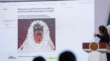 “Ayer en el periódico The Guardian, es de Reino Unido, distintas personas hacen una entrevista al periódico.... No sé si es una carta o es una nota (…) El mundo del arte mexicano protesta por el plan de enviar obras maestras de Frida Kahlo a España”.