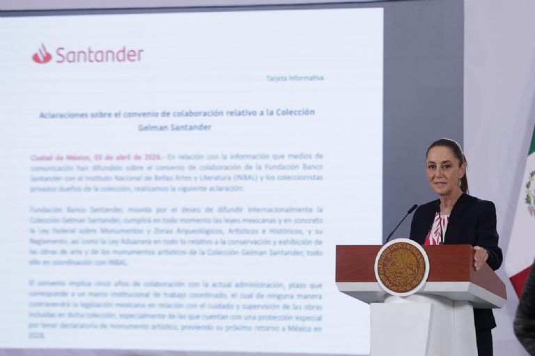 En el comunicado, Santander asegura sobre la “Colección Gelman Santander” que “el convenio implica cinco años de colaboración con la actual administración, plazo que corresponde a un marco institucional de trabajo coordinado, el cual de ninguna manera contravendrá la legislación mexicana en relación con el cuidado y supervisión de las obras incluidas en dicha colección, especialmente de las que cuentan con una protección especial por tener declaratoria de monumento artístico, previendo su próximo retorno a México en 2028”.