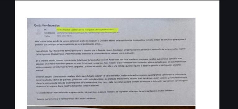 Dichos mensajes no llegan directamente a Rosas, tiradora de 28 años de edad, pues los destinatarios son funcionarios de organismos deportivos como el Instituto del Deporte de la Ciudad de México (Indeporte) o de la Comisión Nacional de Cultura Física y Deporte (Conade) y sin que el remitente se dirija directamente a ella.