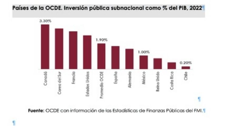 De acuerdo con las cifras expuestas, en 2024 la inversión pública de las entidades federativas alcanzó 140,742 millones de pesos, monto que sigue siendo insuficiente frente a las necesidades de infraestructura, equipamiento urbano y servicios públicos. Según datos de la OCDE, la inversión pública subnacional en México representa apenas el 1.0% del PIB, frente al promedio de 1.9% en los países miembros, lo que sitúa al país en el último lugar entre las repúblicas federales.