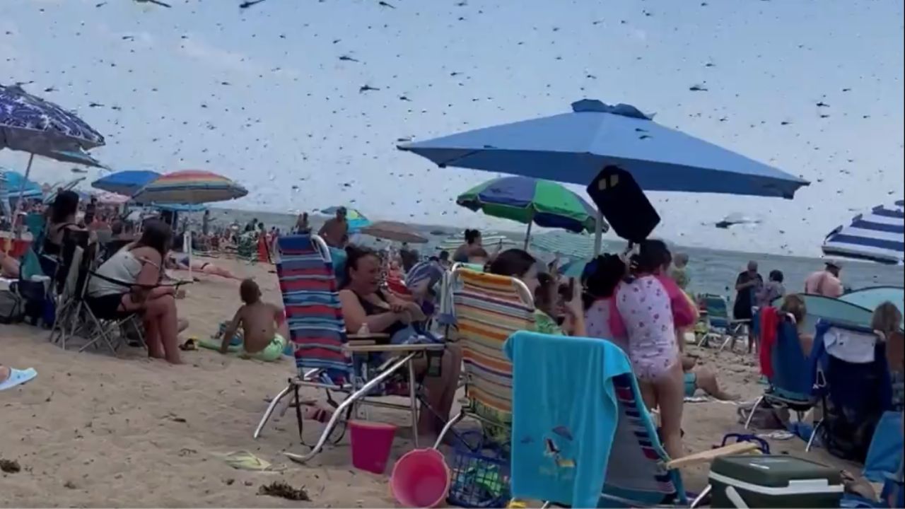 No está claro qué hizo que la nube de insectos visitara la playa durante varios minutos y luego desapareciera en su mayor parte.