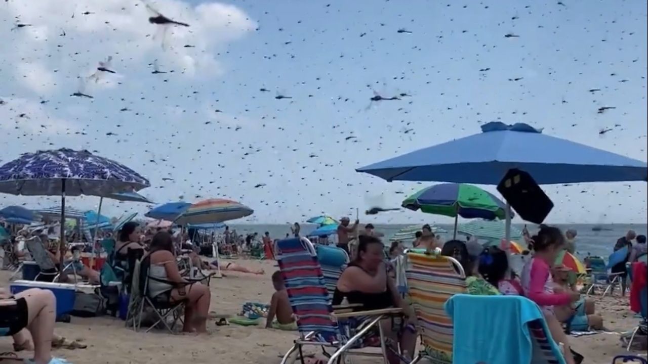 Chris Fiore, cuya familia es propietaria de Alfie's, al otro lado de la calle de la playa, se maravilló ante la singular cantidad de libélulas. "Era fascinante. Había grandes nubes de libélulas", dijo.
